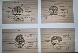 2 trophies were constructed simultaneously. For each trophy, 5 brain sections (Squishy 3D, Acryllic Mosaic, Metallic Paint, and Resin with Dye, Clay cerebellum) were crafted separately and then glued together. The base was constructed last.