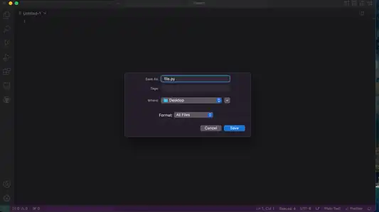To create a new Python file, press (Ctrl/Cmd + N). Then, save the file by pressing (Ctrl/Cmd + S) and name it with a '.py' suffix.
