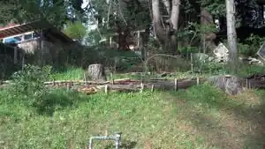 CCAT Earthship Wall bamboo at top (harvested), sticks, tires, logs, cinderblocks (in descending order) Outdoor Architecture