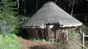 "CCAT's yurt, however, is a permanent structure. With a weatherproofed canvas roof and wooden walls, it is not made for easy disassembly. This yurt was constructed in the late 1970s as part of a class comparing round-structure cultures to square-structure cultures. Andy Alm, Tom Balderston and Rod Huffsmith, then students in the class, spearheaded the project. It is based on designs by Lynn Charney and the Coxes.