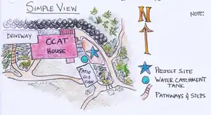 What's the background of the CCAT House? The Campus Center for Appropriate Technology is a live-in demonstration home and educational center for appropriate technology and resource conservation. CCAT is a registered non-profit organization and is the home for three students who live in the house and direct the program for one-year periods. We are located on the Cal Poly Humboldt campus. Motivated by an ethic of "education by example," CCAT offers tours, workshops and opportunities for hands-on involvement to university students and the general public. Approximately 18 part-time student employees keep operations going. A student-funded, student-run organization, CCAT has been operating for about 32 years now. They continue to serve as an living laboratory, giving students the opportunity to learn hands-on by designing, creating and testing numerous appropriate technologies, green-building designs, and sustainable-living techniques. Although the house has been through its fair share of obstacles and speed bumps, the students seem always to push through and prevail so that they can help educate the world about appropriate technology.[2]