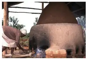 A simple improvement to the traditional kiln is also shown in image 3. A chimney and air ducts have been introduced which allow for a sophisticated gas and heat circulation system and with very little capital investment a significant increase in yield is achieved.