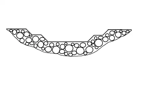 In order to determine Qout, the amount of cross-sectional area reduced by the check dam must first be determined. This value can be estimated by determining the porosity of the check dam. Porosity (n), is defined as the volume of air space (voids) in proportion to the total volume in a sample of soil of aggregate,[5] and since the ratio of volumes in a given sample is equal to the ratio of areas, porosity can be written as