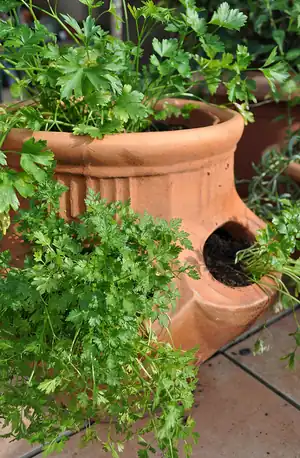 Chervil growing in a container with parsleyChoose a suitable planting spot, direct in the garden or in a container. Chervil is best planted where it will remain growing; avoid transplanting it. Look for rich, light soil that drains well. Chervil requires partial shade.