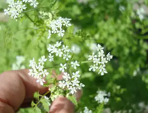 Chervil (Anthriscus cerefolium) is a hardy annual herb with a sweet odour. In appearance it is like parsley, only a lot finer, paler in color and not as strong. It has white flowers when blossoming. On occasion chervil may grow again in the second year due to its large tap root but this is an exception.