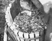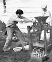 Once you have located a cider press, and when you have gathered your apples, you are ready to begin. It usually takes a bushel of apples to yield two-or three gallons of cider.