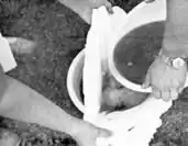 5. Hold cloth over bowl to strain juice.