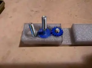 - Use the pliers and 40 mm bolt to plasti-form threads on the handle gear.