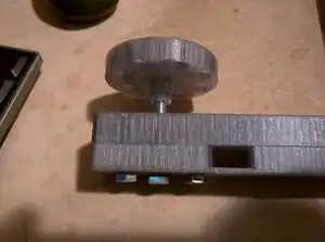 - The casing has a 10 mm hole that enables locking when the handle gear is aligned with it and a pin is inserted. Could be 3D printed, pencils work well too.