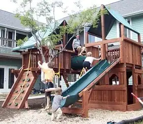 Cohousing is an intentional, self-governing, cooperative community where residents live in private homes often clustered around shared space. The term originated in Denmark in the late 1960s. Families live in attached or single-family homes with traditional amenities, usually including a private kitchenette. As part of the communal orientation, shared spaces typically feature a common house, which may include a large kitchen and dining area, laundry, and recreational spaces. Walkways, open space, parking, playgrounds and gardens are common examples of shared outdoor spaces designed to promote social interactions. Neighbors also often share resources like tools, babysitting and creative skills.