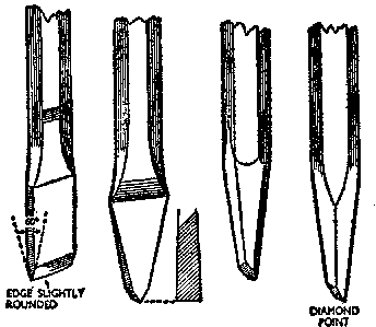 - The diamond-pointed chisel is drawn down to a square section at the end and then ground away to a single bevel. It is used for chipping through plates and cleaning out square internal angles. A tool very similar to the diamond-point chisel is used to cut the teeth on a wood rasp.