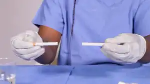 - Place the Mayo scissors on the proximal end of the cigarette closest to you to stabilize it