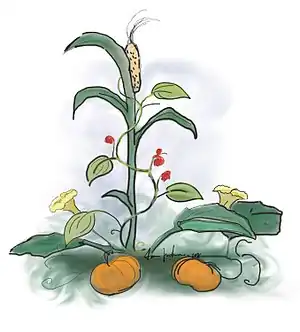 One of the earliest examples of companion planting we have today is that of the Native American peoples, who planted corn and pole beans together. The cornstalk would become a trellis for the beans to climb up. With the addition of squash, they pioneered what became the Three Sisters technique. Many of the modern principles of companion planting were present many centuries ago in the cottage garden. Companion planting was widely touted in the 1970s as part of the organic gardening movement. It was encouraged not for pragmatic reasons like trellising, but rather with the idea that different species of plant may thrive more when close together.
