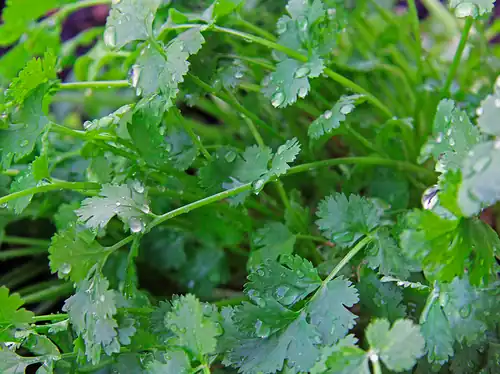 Coriander (Coriandum sativum), also known as cilantro, is a hardy annual. It resembles parsley in leaf shape and formation but tastes quite different from parsley.
