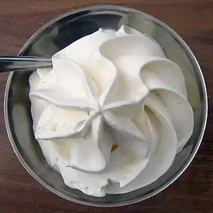 has around a 36% fat content, which allows air to be trapped when whipped, roughly doubling the volume. Once whipped, it can be used to top desserts or fill cakes and pastries.