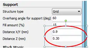 - In the Expert Configurations, I suggest increasing the "Distance Z" to.20-.30 to allow the supports to be disconnected easier and leave less residue on the printed model