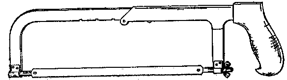 The piercing saw, shown in Fig. 4, is used for cutting internal holes, slots, and shapes. It consists of a frame with jaws and a handle; the lower jaw is adjustable so that the saw blades of various lengths may be used. The blade should be set in the frame with the teeth pointing toward the handle