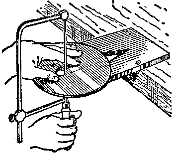 so that the cut is made on the downward stroke. The method of holding the saw is shown in Fig. 4. Anyone interested in doing decorative work in thin metals will find a piercing saw a most valuable tool. To cut a slot or any other enclosed shape, it is first necessary to drill a small hole. The blade is then inserted, and fastened to the saw frame, and the hole is cut to the desired shape.
