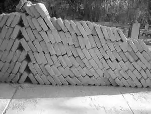Fig 1a: The adobe bricks, propped up on the second day to dry faster.