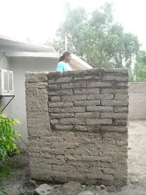 Fig 1a: We placed a thick mortar between each layer of bricks