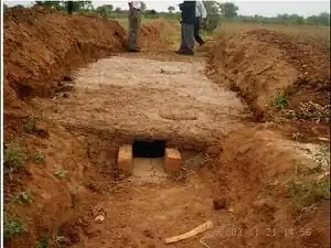 This consists of a dead level contour with storage underground tanks made from local materials. The capacity range from 5m3 to 20m3 depending on farmer preference. A dead level contour is a channel dug in the field with a zero gradient or slopes, so that water does not flow but is harnessed and stored in the channel. The underground storage tanks are constructed in such a way that they are covered to reduce evaporation and rammed to reduce deep percolation.