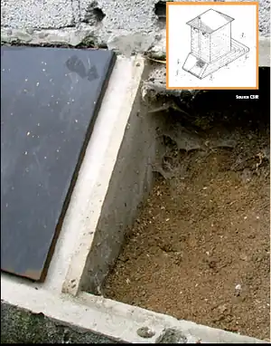 The vaults must be watertight to keep the faeces as dry as possible. Chambers should be constructed of sealed block or formed concrete to ensure that rainwater, surface run-off, greywater and urine are prevented from entering the vaults. Urine can be collected in a bucket and discharge to the ground (garden) or stored in a tank for future transport and use.