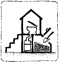To prevent flies, minimize odours and encourage drying, a small amount of ash, soil, or lime should be used to cover faeces after each use. Care should be taken to ensure that no water or urine gets into the Dehydration Vault. If this happens, extra soil, ash, lime, or sawdust can be added to help absorb the liquid. Because the faeces are not actually degraded (just dried), dry cleansing materials must not be added to the Dehydration Vaults as they will not decompose. Occasionally, the mounded faeces beneath the toilet hole should be pushed to the sides of the pit for an even drying. Where water is used for cleansing, an appropriate User Interface should be installed to divert and collect it separately. To empty the vaults, a shovel, gloves and possibly a face mask (cloth) should be used to limit contact with the dried faeces.