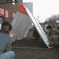Die Konstruktion aus Bambus ist stabil und sehr leicht. Während Schwierigkeiten mit der Polizei oder anderen Troubles sollten die Democamp Einheiten nicht zu Problem werden. Das Material ist billig und kann zur Not einfach stehen gelassen werden.