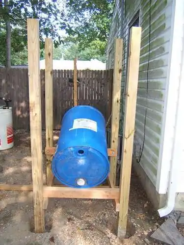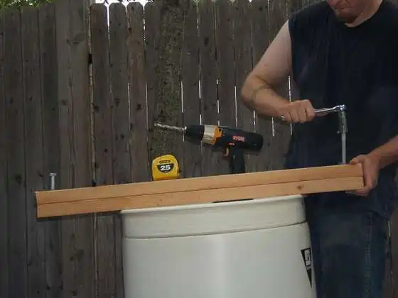 Make sure the pipe fits and rests comfortably on the barrel. Also, I used a piece of wire nailed to the barrel brace to hold the new drain in place.