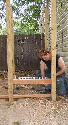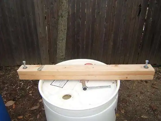 I drilled pilot holes into the posts where the barrel brace was to go. The pilot holes were exactly 13 inches up from the ground.
