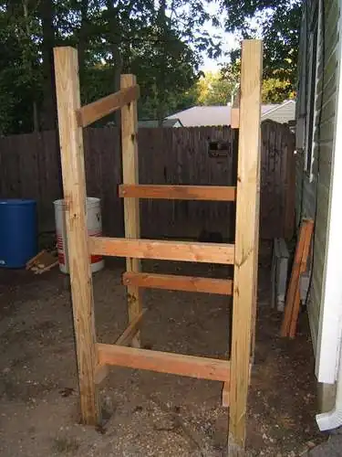 The ends of the last two pole braces went up exactly 26 inches from the tops of the top two barrel braces and are held in with screws.