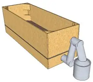- Plywood (1/2 inch thick)- 8 x 0.3 m x 0.1 m cut at 45 degree angles at ends for bracing (I)