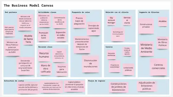 Sabías que para el año 2020, el Ministerio de Obras Públicas llevo a cabo un proyecto de sistema urbano de drenaje sostenible para beneficiar a más de 35,000 habitantes de la zonas aledañas al límite entre Santa Tecla y San Salvador en la calle El Jabalí. Así como este proyecto de SUDS benefició a un grupo de personas, los jardines de bioretención también son una solución a los problemas de inundación que suceden en el territorio tecleño y en diferentes partes de todo el país. Este producto tiene la ventaja de poder ser implementado a gran escala como el proyecto que ejecutó el Ministerio de Obras Públicas o hacerse a pequeña escala en las colonias, residenciales, condominios o incluso solo en la acera de una casa. La idea es reducir el volumen de agua que llega a las alcantarillas por medio de los jardines de bioretención para que el sistema de alcantarillado no se sature, existan menos fugas de agua, la vida útil de las tuberías sea mayor y también poder captar el agua lluvia y darle una segunda vida. El segmento de clientes es amplio y no se limita a un nicho único de mercado, por lo que este proyecto tiene un gran potencial.