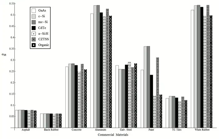 - Determined albedo effects on the performance of seven PV materials.
