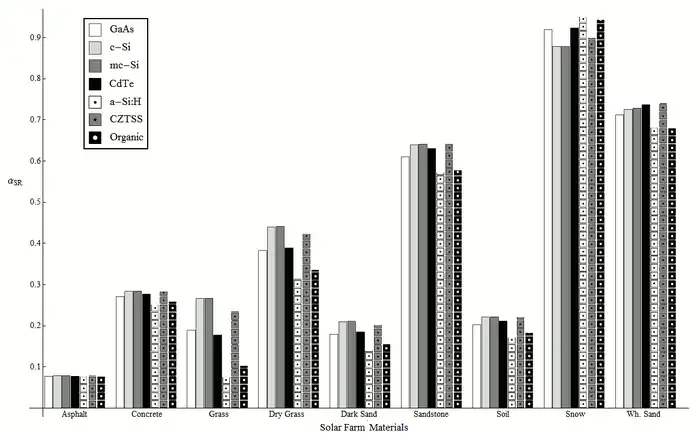 - Spectral bias from ground albedo impacts optimal selection of photovoltaic materials.