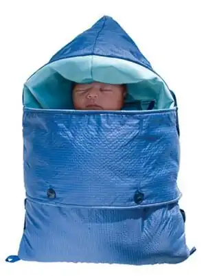 The Embrace Infant Warmer works by combining a hypoallergenic sleeping bag with a compartment that holds a pouch of wax. The pouch of wax is first heated to 37 degrees Celsius and then inserted into the sleeping bag with the baby. The bag will stay between 36 and 37 degrees Celsius for up to 4 hours. The warming bag is made of a phase-change material that prevents the baby from getting too warm or too cold.