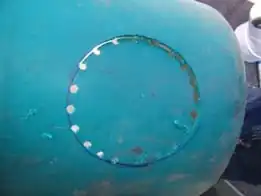 The trompe, sometimes spelled trombe, is a mechanism for drawing mixing air with water and pressurizing the air. A tube of varying length is installed perpendicular to the surface of water with its opening just below the surface. This arrangement causes water and air to be alternately pulled down into the tube, first the water by gravity then air by the vacuum created when a small amount of water descends into the tube. The switch happens when the water immediately surrounding the pipe entrance flows in, because the surface height there takes time to equalize back up to the surface height of the rest of the water. When the mixture of water and air descends down the pipe the air becomes pressurized by the weight of the water. (Hunt 2010)