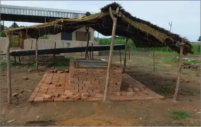 The brick ECC was originally developed in India by Susanta K. Roy and D.S. Khuridiya in the early 1980s to address fruit and vegetable post-harvest losses, especially in rural areas where electricity is non-existent.[1][2] Roy and Khuridiya's ECC design is composed of a double brick wall structure, supported by a base layer of brick, and covered with a straw mat.