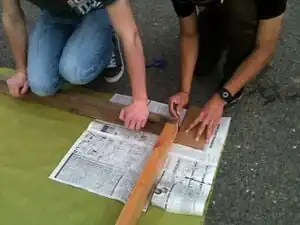 Using a newspaper template, mark on the previously cut fabric to properly fold on the corner of the panel frame. This can be done in multiple ways and is mostly based on the users preference.... (Photo by Cole Humphrey)