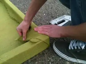 After cuts have been made. Stretch fabric over frame and staple. Depending on the fabric the may require multiple people and/ or stretching processes.... (Photo by Michael Harrow)