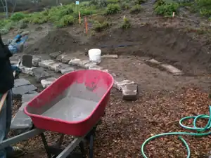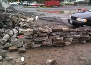 The Builders of the Bay built and tested two separate retaining walls before the final installation of the walls at the Humboldt Coastal Nature Center. The purpose of these tests was to practice the actual building of the walls and to make sure the material we were recovering from Kernen Construction would be suitable to use for stacking and building the walls.