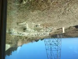 The amphitheater that is used by students that are on field trips. It is used weekly if the weather allows it. It is evident that it needs some maintenance. Weeds need to be picked and some sand must be added to the stairs.