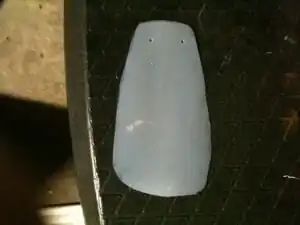 Cut the shingle out with either scissors or a box cutter. Once you have multiple shingles created you can layer them together to punch holes in them. Using a 16 penny nail and a hammer, hammer two holes all the way through each shingle.