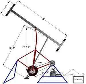 The Pump'n Power utilizes kinetic energy primarily from upper body strength to operate a lever arm, as seen in a railroad hand pump trolley, to produce electrical energy. The lever arm drives a bar connected to the lower portion of a recycled bicycle. The rear tire gear has two chains connected to it. The first is attached from the petal gear to the rear gear, and the second is attached from the rear gear to the generator. The generator is mounted to the lower structure of the bicycle support piece. From the generator a charge controller, along with a blocking diode, are then connected to a battery. The following subsections break the Pump'n Power generator down into its components and explain them in detail.