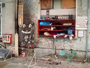 "Give-away shops", "freeshops" or "free stores" are stores where all goods are free. They are similar to charity shops, with mostly second-hand items—only everything is available at no cost. Whether it is a book, a piece of furniture, a garment or a household item, it is all freely given away, although some operate a one-in, one-out–type policy (swap shops). Today the idea is kept alive by the new generations of social centres, anarchists and environmentalists who view the idea as an intriguing way to raise awareness about consumer culture and to promote the reuse of commodities.