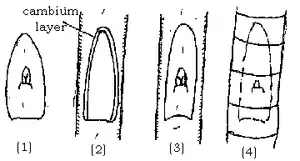 - Cut a slice of bud and bark from the parent tree.