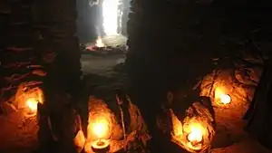 The oil lamp uses liquid biofuel. It is the most recent type of lighting. It is made by combining a plant oil with a wick. The wick itself does not burn, but the oil does, being sucked up through capillary action by the wick.[2]