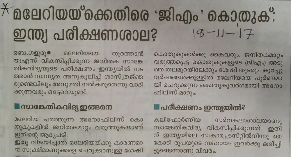 News on "GM Mosquito: India Test Ground?"