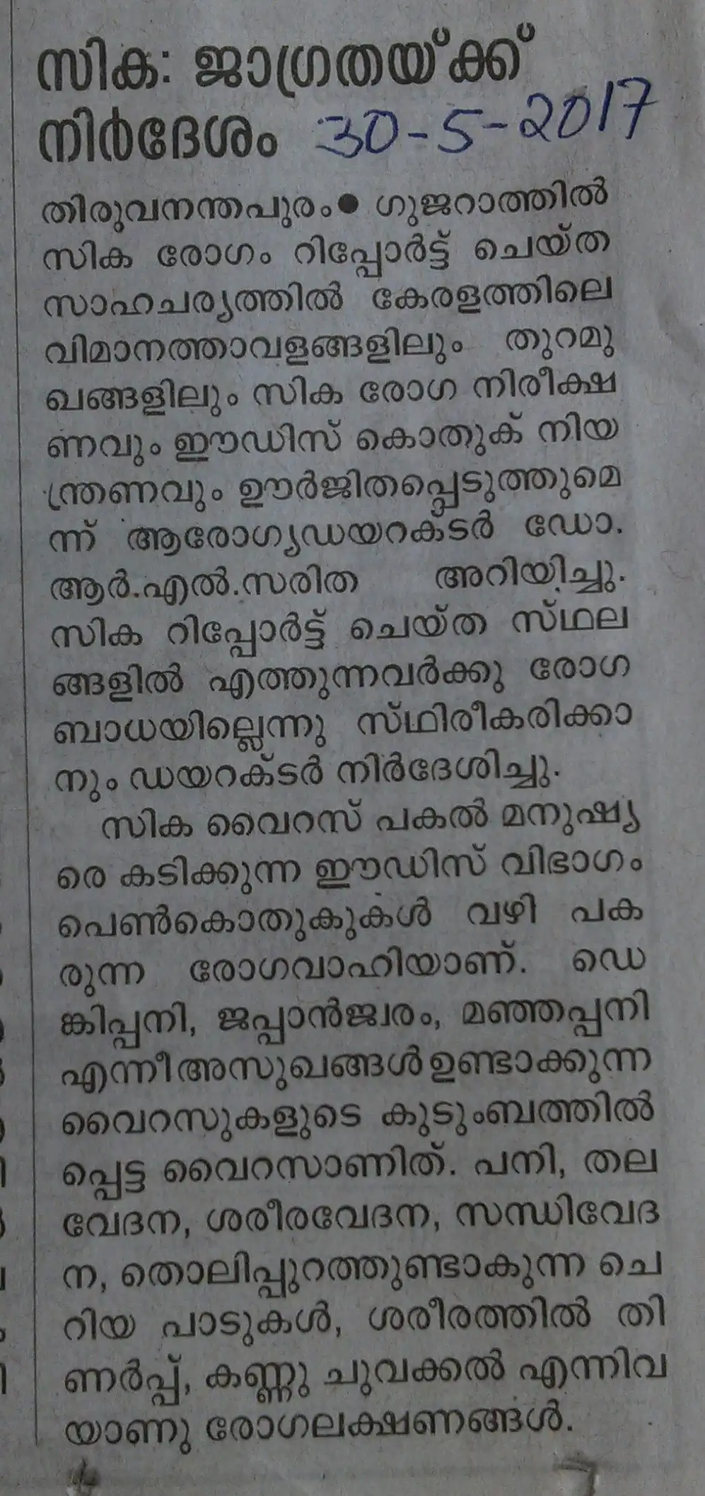 - Zika fever, confirmed by W H O in Delhi 2 years ago (in 2016). It is awaiting the next fever season here (Keralam)!