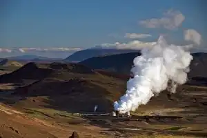 Built in 1969, Iceland's very first geothermal plant, the Bjarnarflag Geothermal Plant, is a flash steam plant located in North Iceland. Bjarnarflag takes the steam produced from the hot water in the ground to generate 3 megawatts of electrical power. The water that is separated from the steam in this plant is used to heat the fresh water used for district heating in Bjarnarflag.[8]